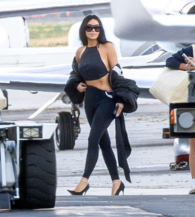 В аэропорту Лос-Анджелеса Ким Кардашян появилась в откровенном наряде, который заставил поклонников в очередной раз схватиться за голову, пишет Daily Mail. Ее черный топ-халтер и обтягивающие леггинсы подчеркивали не просто стройную, а почти нереально тонкую талию, которая выглядела еще миниатюрнее по сравнению с пышными бедрами.