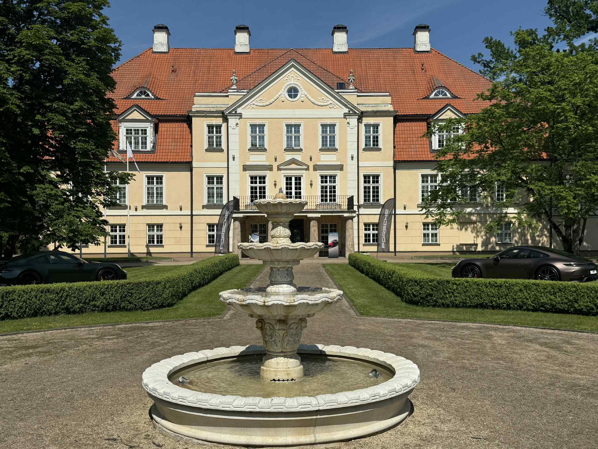 Но, разумеется, прямо рядом с прудом, откуда бьет мощная фонтанная струя — развалины, руки у нынешних владельцев не дошли. Используют имение для коммерческих целей — как раз во время нашего приезда тут была выставка–продажа эксклюзивных германских спорткаров. Так причудливо родина остзейских баронов напоминает о себе.