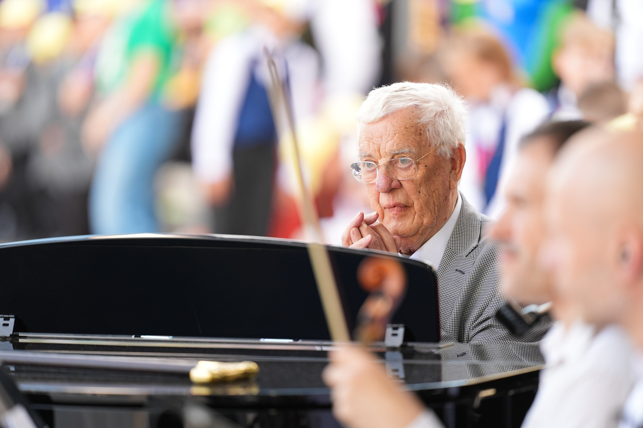 И играл всем на радость Раймонд Паулс - две песни. Многотысячный хор спел в честь Маэстро, которому скоро исполнится 90 лет, здравицу Sveiks lai dzīvo. Пел несколько песен неувядающий Ренар Кауперс, в финале исполнивший «Мою песню».