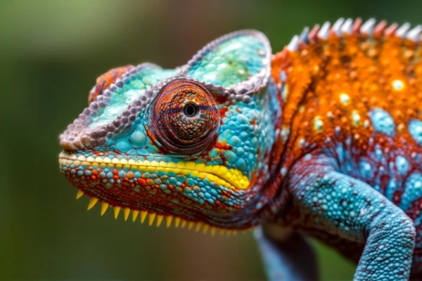 Хамелеоны могут менять цвет на любые оттенки, включая невидимые для человеческого глаза. Обычно они выглядят зелеными из-за сочетания желтого пигмента и отражаемого синего света. Это помогает им сливаться с окружающей средой, что важно для защиты от хищников.