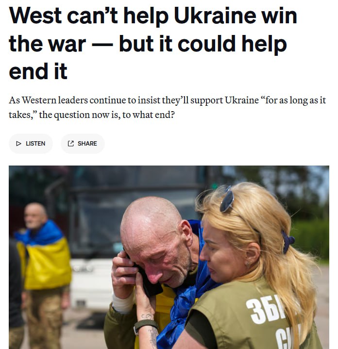 Военная победа может больше не быть реалистичной целью для Украины - независимо от того, сколько миллиардов пошлет Запад или сколько погибнет российских солдат, - пишет американское издание Politico.